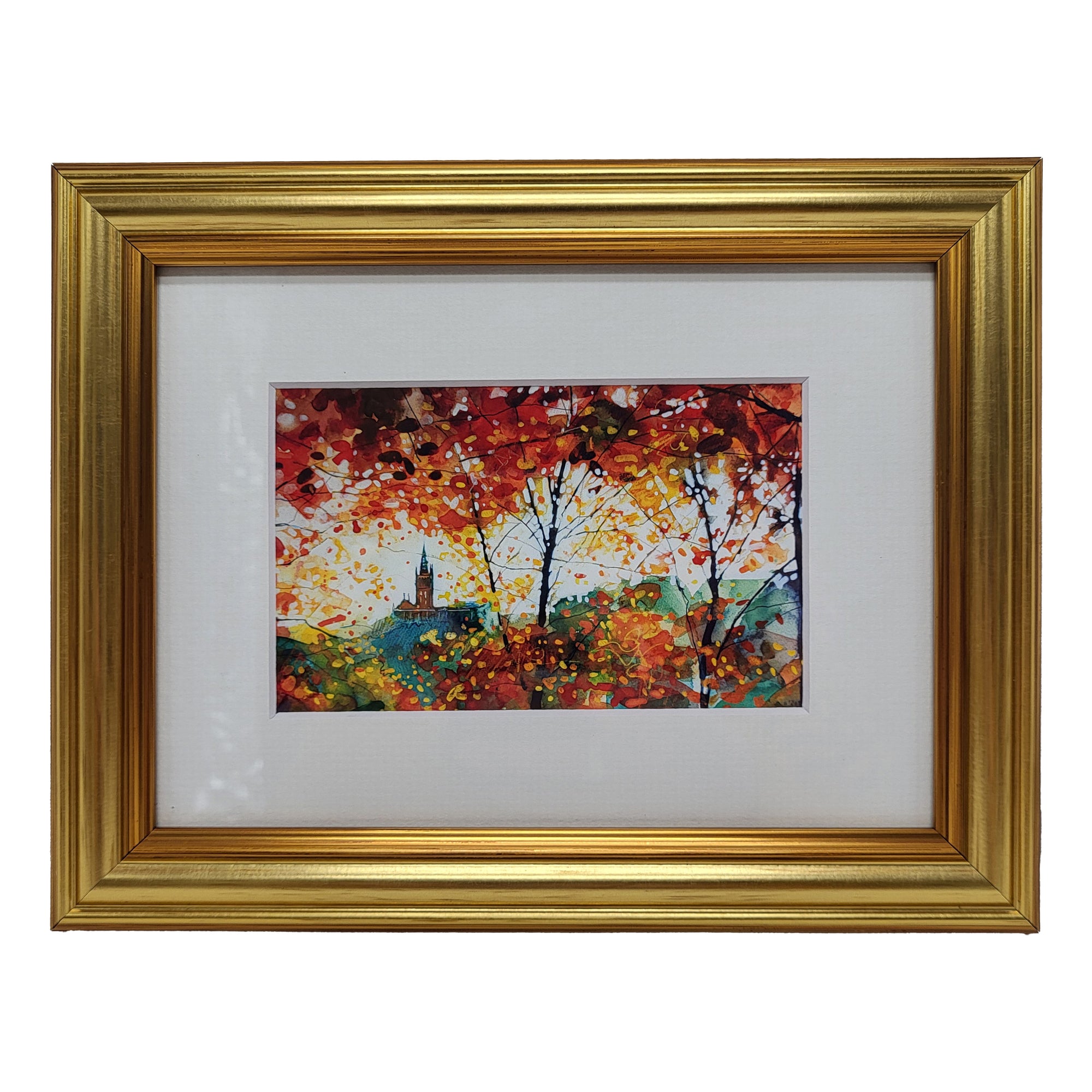 An autumnal view of the spectacular University of Glasgow. From an original watercolour painting.