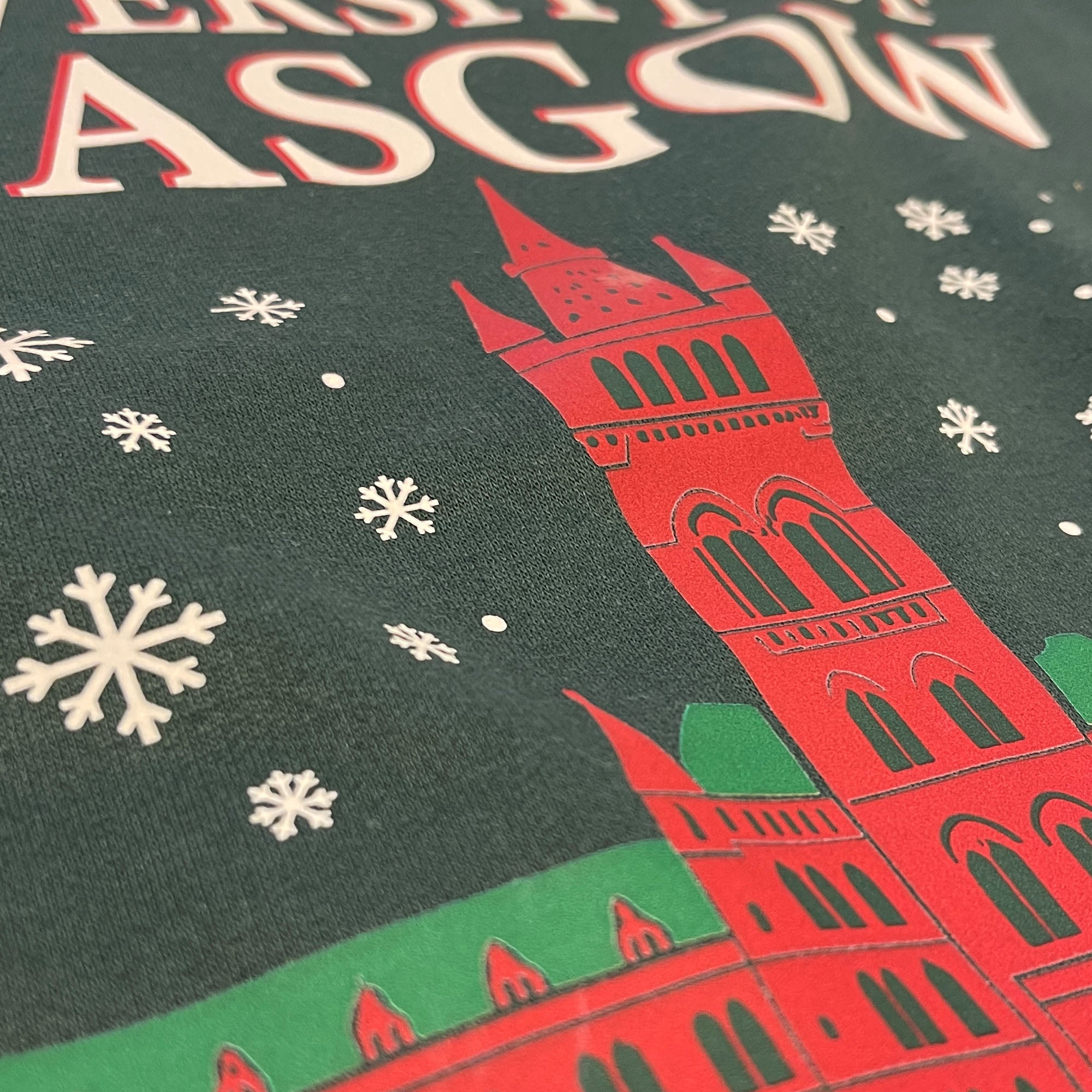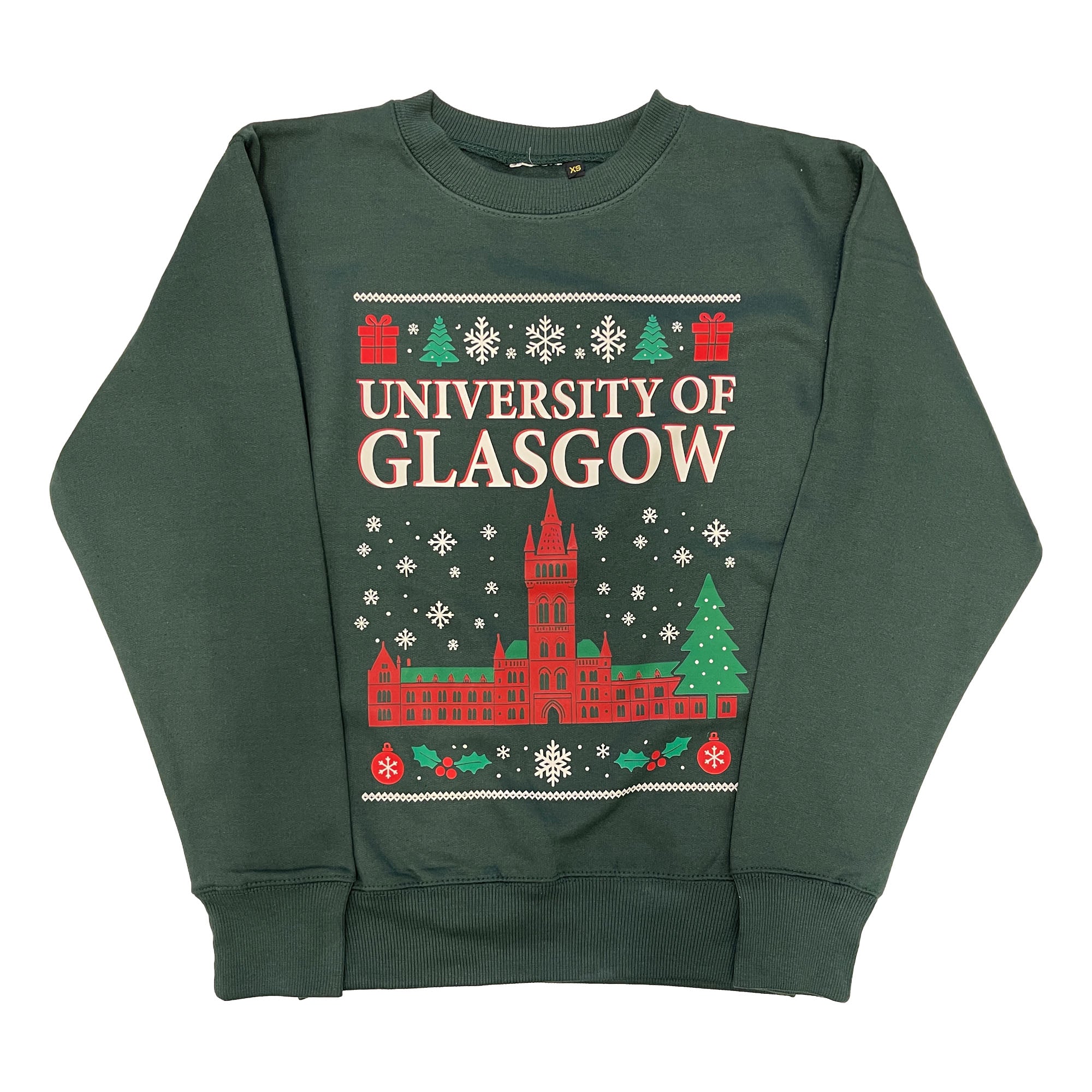Get cosy in our festive University Christmas Jumper. Our sweatshirt features the classic Christmas jumper print, with University of Glasgow proudly emblazoned above the main building.