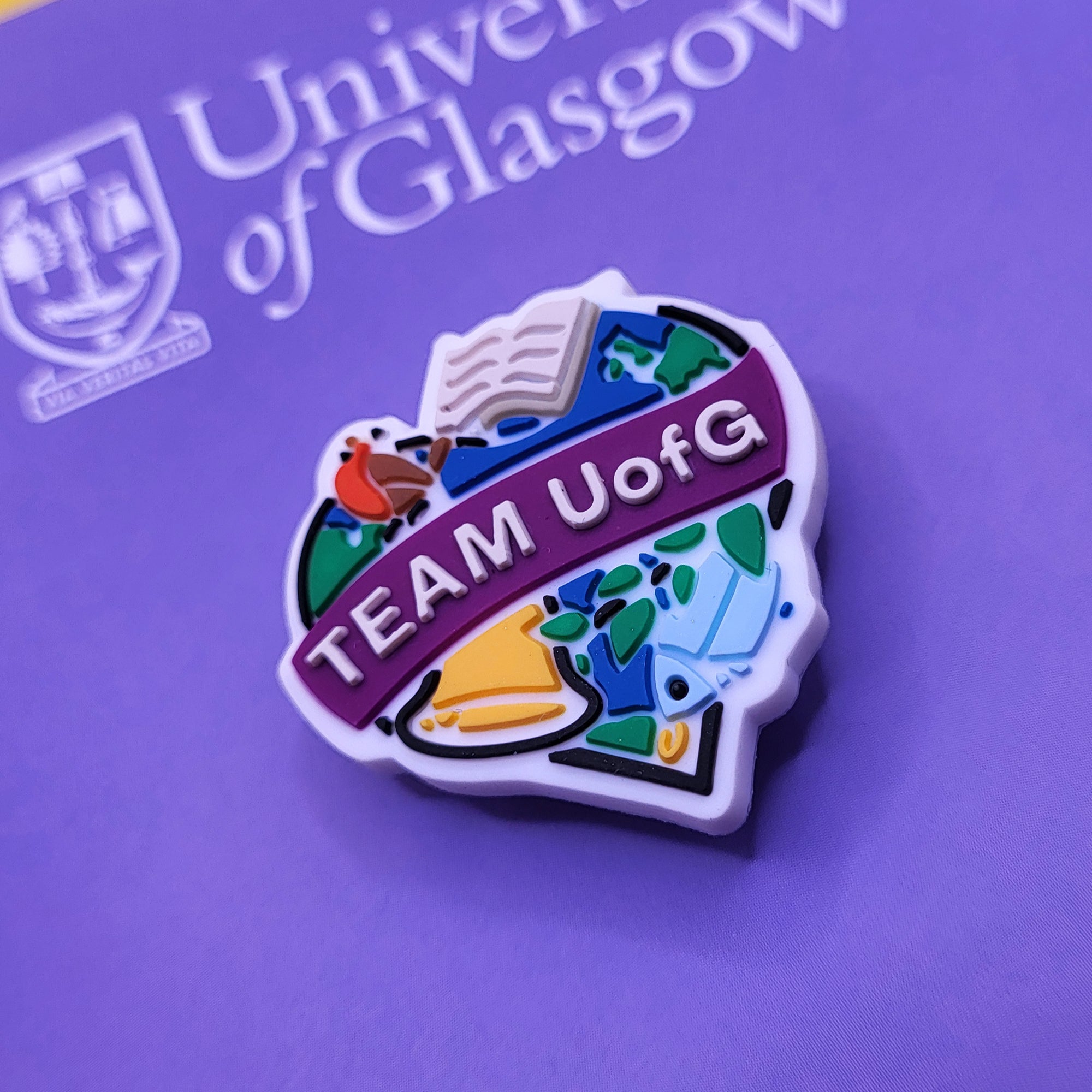 The logo features elements from the University of Glasgow crest which shows the "miracles" of the city's patron saint, St. Mungo - a tree branch, a bird, a bell and a fish, along with the Book of Learning.